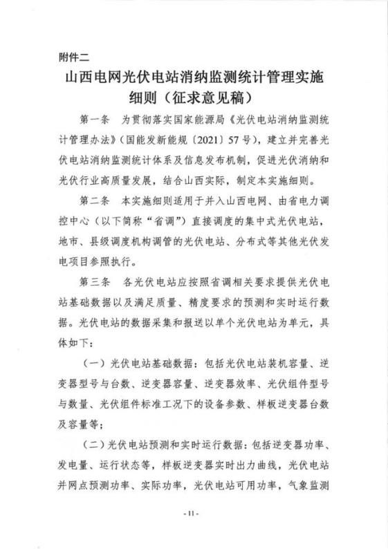 7月26日,山西能源監(jiān)管辦發(fā)布《山西電網光伏電站消納監(jiān)測統(tǒng)計管理實施細則(征求意見稿)》。