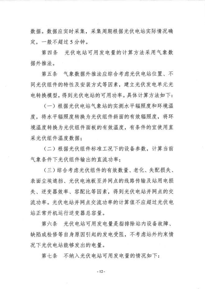 不納入光伏電站可用發(fā)電量的情況如下: