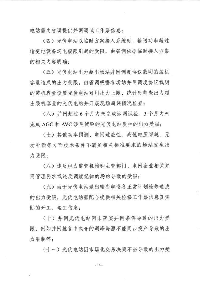 并網超過6個月內未完成涉網試驗、3個月內未完成AGC和AVC涉網試驗的光伏電站發(fā)生的出力受限;