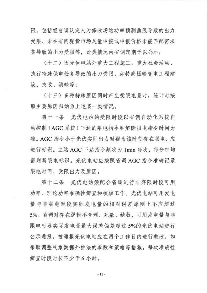 光伏電站可用發(fā)電量與非限電時段實際發(fā)電量的相對誤差原則上不應超過5%。省調對存在邏輯不合理、死數(shù)、缺數(shù)、可用發(fā)電量與非限電時段實際發(fā)電量最大誤差偏差超過5%的光伏電站進行公示通報。