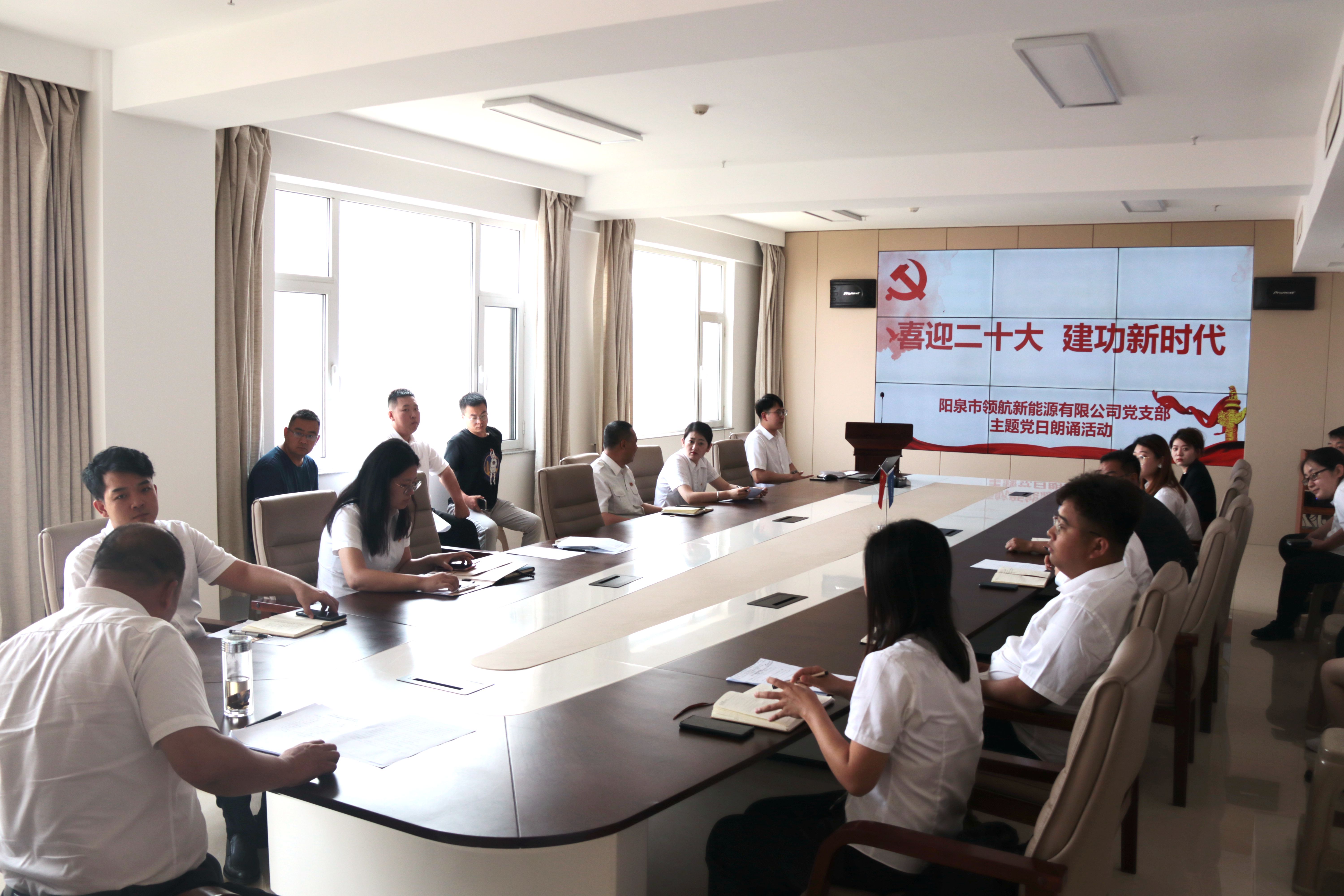 6月9日上午,陽泉市領(lǐng)航新能源有限公司黨支部開展“喜迎二十大 建功新時代”主題黨日朗誦活動,進(jìn)一步激發(fā)廣大黨員不忘初心使命、永葆政治本色、為黨和人民事業(yè)增添正能量而繼續(xù)奮斗的豪邁熱情。